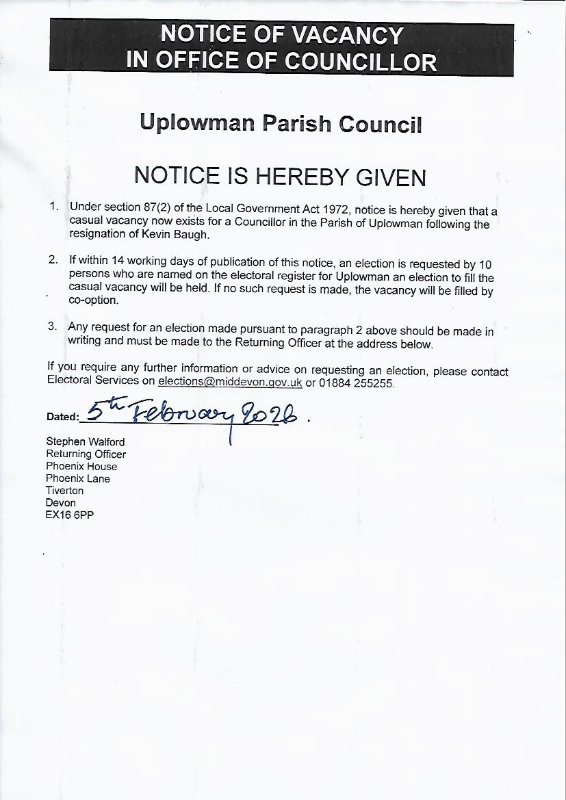 COUNCILLOR VACANCY: Please see here for the Notice of Vacancy. If you would like to join the PC and help shape life in our community then please get in touch!